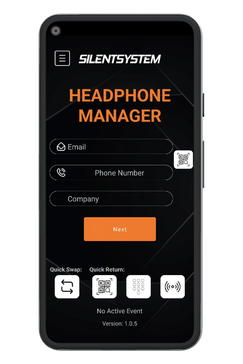 La Headphone Manager App de Silentsystem es la solución inteligente y escalable para gestionar la logística de los auriculares inalámbricos en cualquier evento silent. Diseñada específicamente para los profesionales del alquiler de eventos, la app simplifica cada fase del proceso — desde los check-in inmediatos mediante código QR, a la asignación rápida y precisa de los auriculares, hasta el control de los depósitos para una mayor seguridad. Gracias al seguimiento en tiempo real del inventario, a las devoluciones rápidas y a la compatibilidad con sistemas de ticketing como Eventbrite, ayuda a prevenir pérdidas y mejorar la eficiencia global. Ya sea una silent disco, una conferencia corporativa o una clase de fitness, la app garantiza una experiencia profesional tanto para los organizadores como para los participantes. Totalmente personalizable con tu marca, te permite centrarte en el evento, no en el equipamiento.